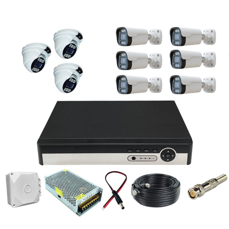 پکیج کامل سیستم مداربسته 9 دوربین فلزی 5mp ضد آب دید در شب رنگی و تشخیص چهره با 90 متر کابل رایگان