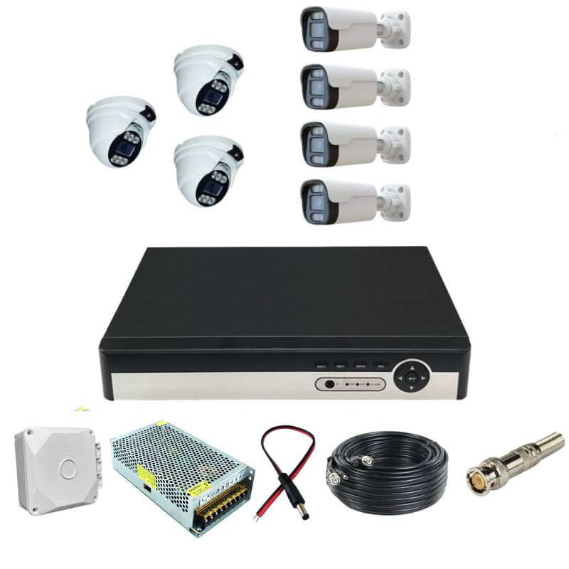 پکیج شامل ۱۵۰ متر کابل رایگان است که امکان نصب سریع و آسان دوربین‌ها را فراهم می‌کند. پایه نصب، پیچ و رول‌پلاک همراه پکیج ارائه می‌شوند تا نصب کامل بدون نیاز به تجهیزات اضافی انجام شود.